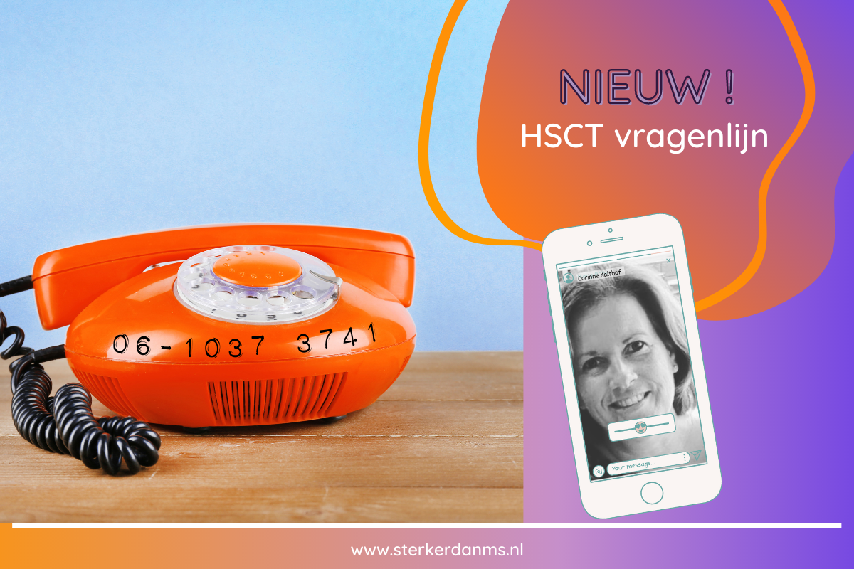 We hebben iets nieuws! We gaan van start met een “Vragenlijn” bij Stichting Sterker dan MS. Ons team is uitgebreid met een nieuwe vrijwilliger en zij zal twee keer per week telefonisch bereikbaar zijn om HSCT gerelateerde vragen te beantwoorden voor MS patiĆ«nten. Je kunt haar bereiken op het telefoonnummer dat wij voor onze vragenlijn beschikbaar hebben gesteld. We stellen jullie graag voor aan Corinne en ze zal zichzelf kort even introduceren.Ā
